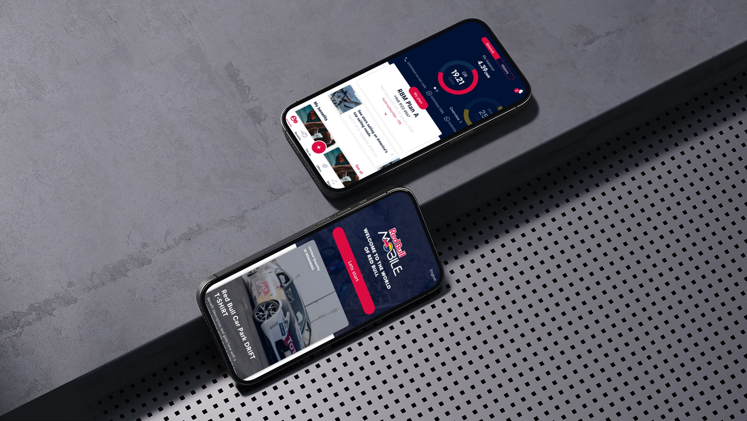 Red Bull Mobile, a subsidiary of Red Bull Media House, has operated for over a decade. It focuses on various innovative digital solutions related to mobile services, either country-specific or global. In 2019, Red Bull Mobile decided to enter a new market, Oman, marking the launch of a new MVNO (mobile virtual network operator) that aligns with Red Bull’s core values. We were invited to support the creation of mobile self-care apps for this new venture.